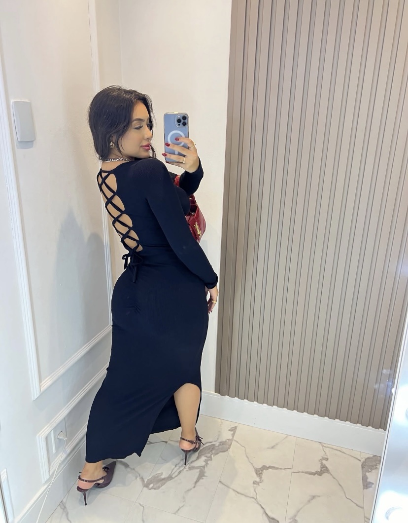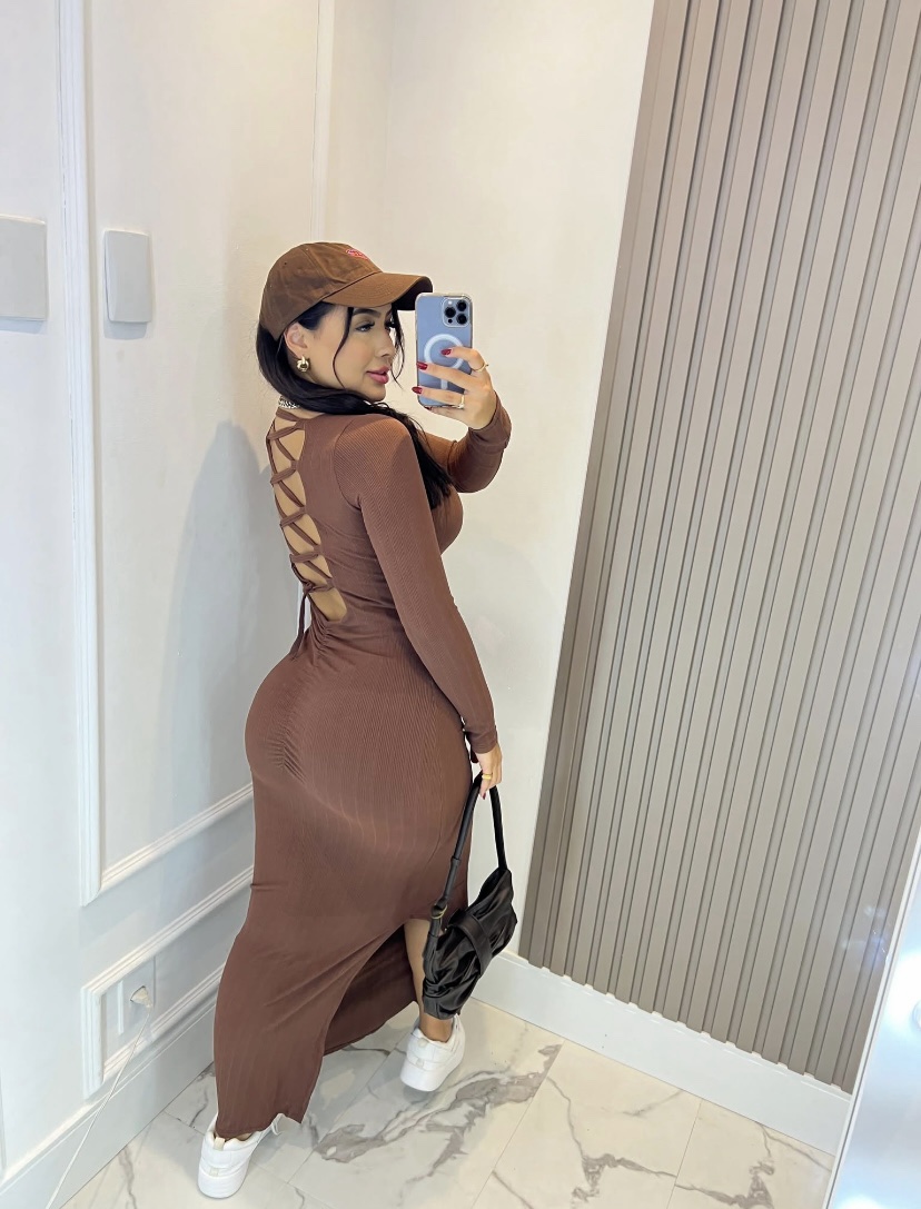Vestido longo com empina bumbum detalhado com cruzamento trançado tamanho único que veste do 36 ao 42